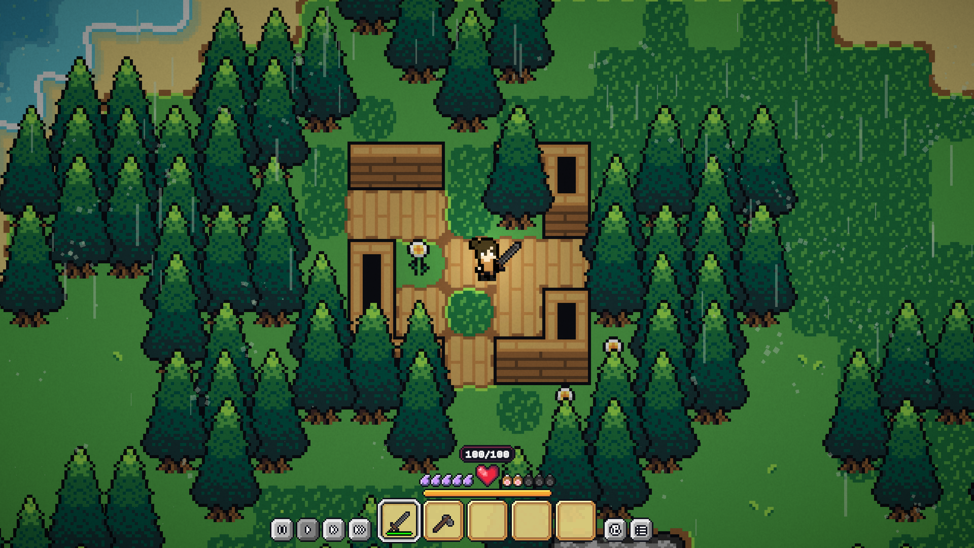 You are an adventurer of The Flatlands! Explore the biomes of the surface, or the caves of the depths. Build a shelter to hide from the ascending creatures of the night. Farm to not starve. Forge your own equipments. Show your combat skills against lesser enemies and their greater patrons. You are the new ruler of this world, so make anything as you wish!