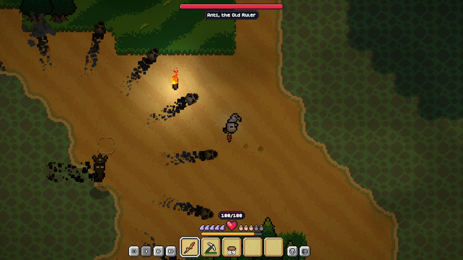 You are an adventurer! Explore the biomes of the surface, or the caves of the depths. Build a shelter to hide from the ascending creatures of the night. Farm to not starve. Forge your own equipments. Show your combat skills against lesser enemies and their greater patrons. You are the new ruler of this world, so make anything as you wish!